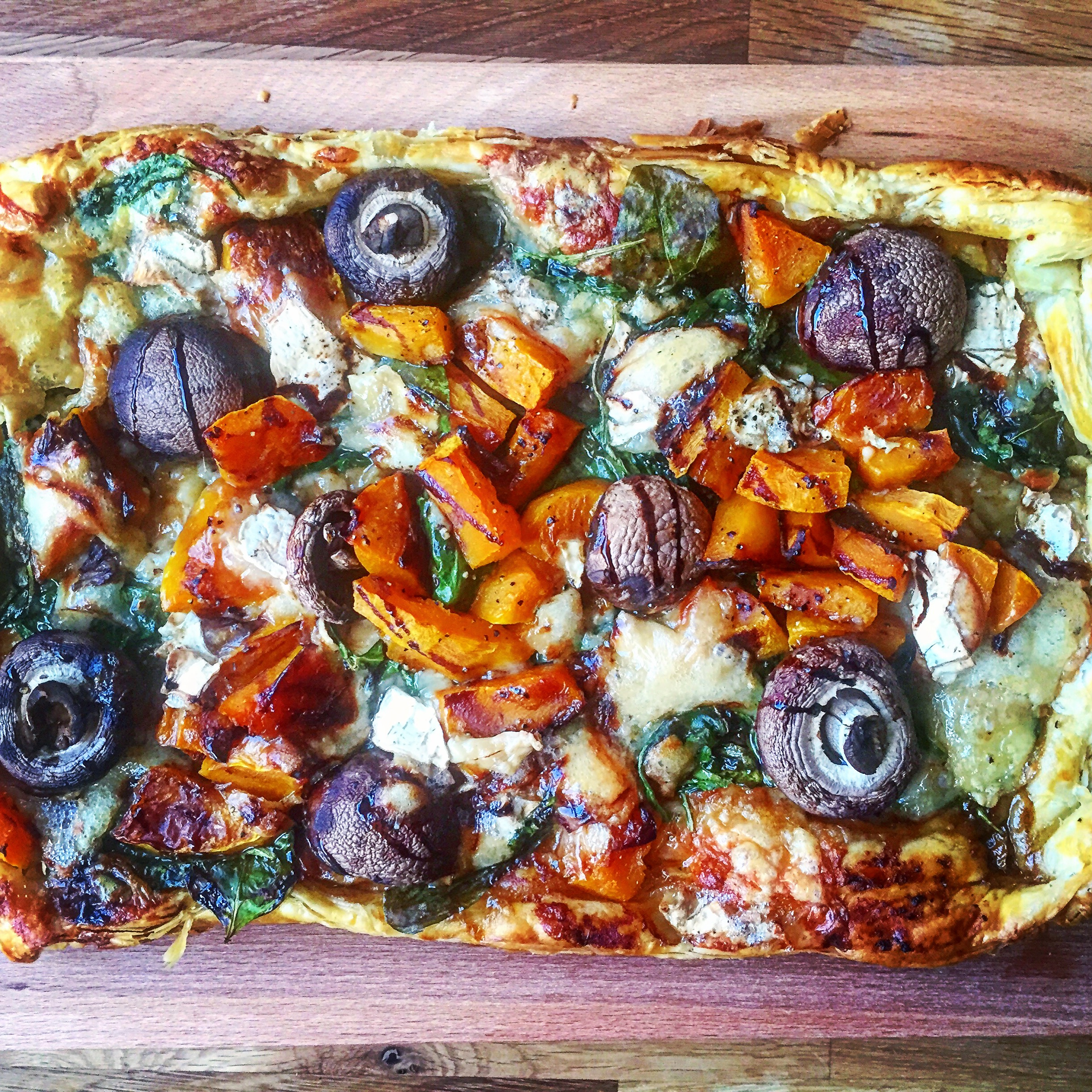 I wasn’t quite sure what to call this one, Pizza Puff, Veggie Slate or Butternut Puff. To be perfectly honest I don’t feel that any really give this beaut any Justice. Its basically a crispy, pooffy surface that lovingly encases roasted butternut squash, goats cheese, spinach and mushrooms with just the tiniest hint of sundried tomato pesto ( cause we like to be fancy and it makes it kida pizza-y). So I bring you the Butternut Puff, the yummiest brunch/lunch/dinner option!