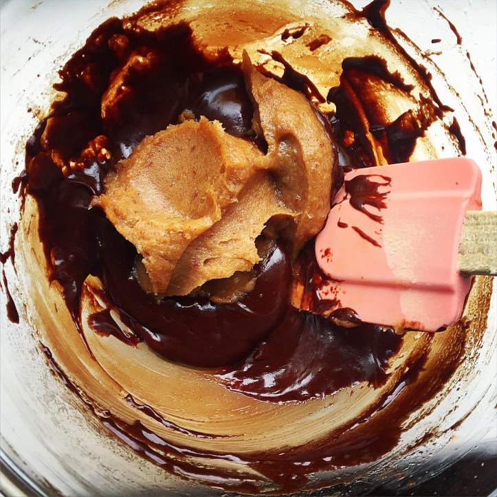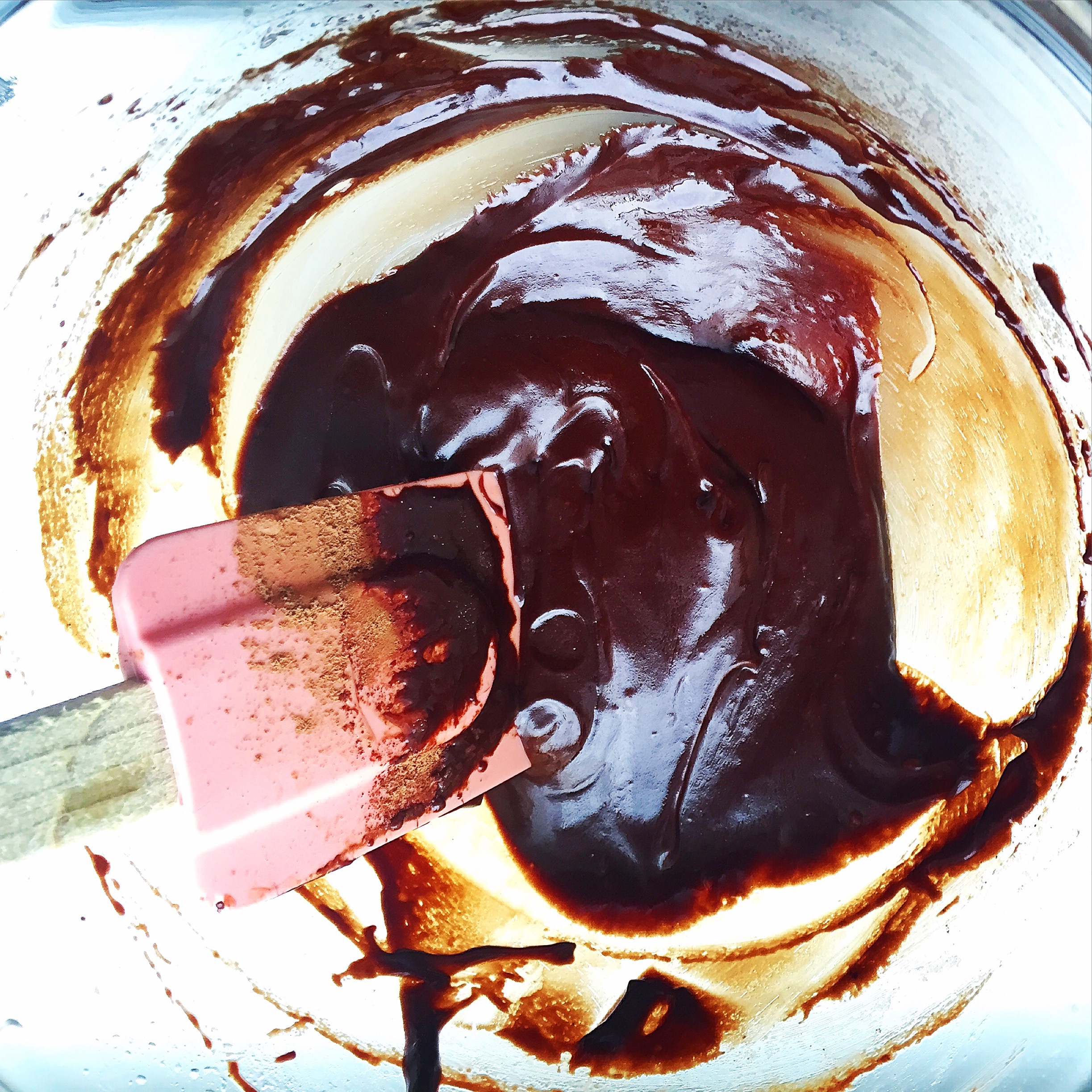 Ok next, if using… totally optional but well worth it in my opinion, add the raw caramel to the chocolate.