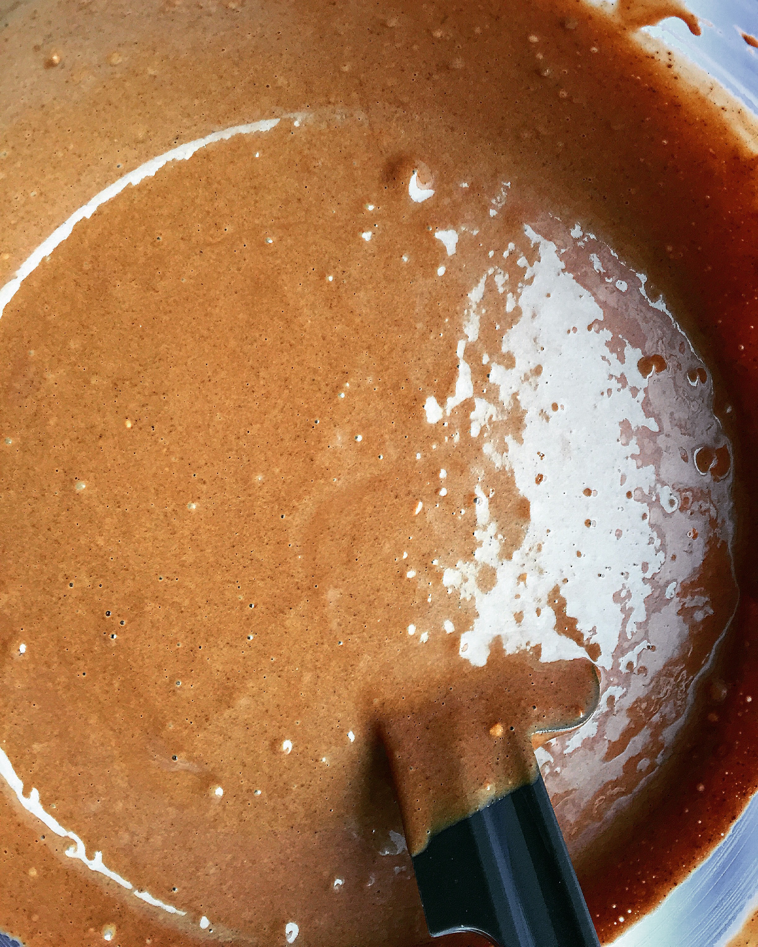 In another bowl mix all of the wet ingredients together and then add it slowly to the bowl of the dry ingredients.