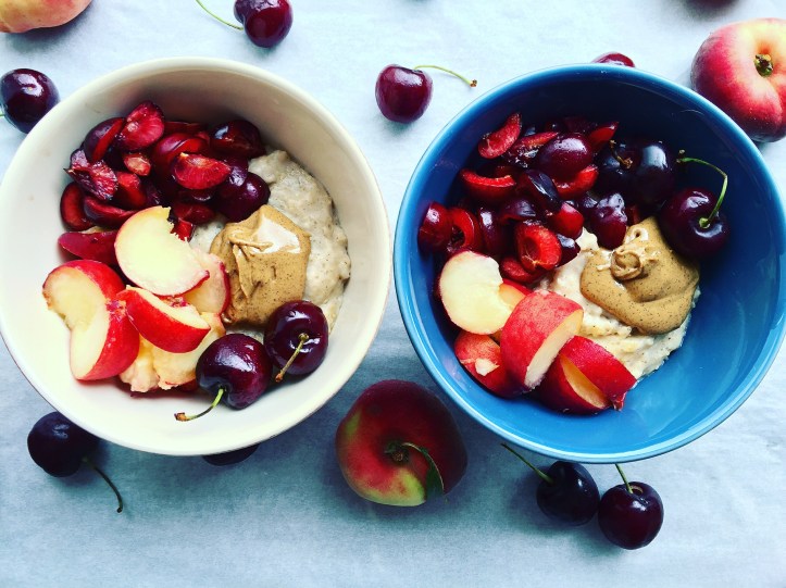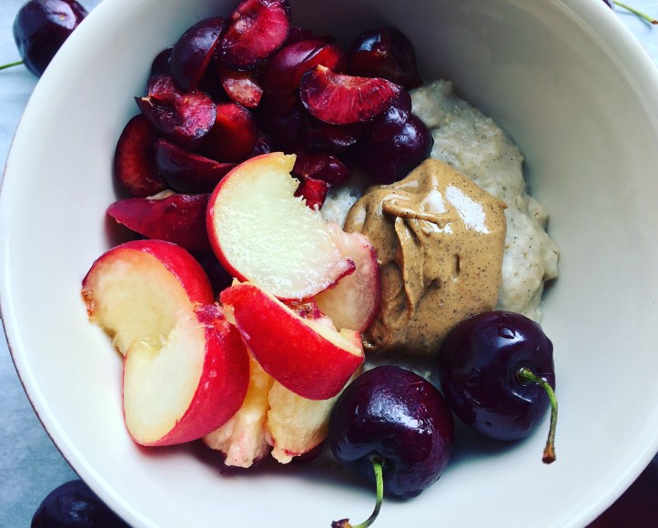 Oooooooooooooooh baby! This is without doubt my favourite porridge of all timeā¦. And thatās saying something! You may remember in my last post I gave you a little recipe for Vanilla Cashew Butter? Well that was no coincidence my dear! Oh no, you cannot have one without the other! In case you didnāt see it, you can if you click HERE. So here it is in all its glory, the best porridge you will ever meet. Itās Rich and Creamy without being overly sweet and loved by adults and children alike! The best part about this recipe is that itās so quick and easy to make and all the ingredients are in season, which makes it super cheap! For instance I get my cherries and peaches in Lidl. Swag!
